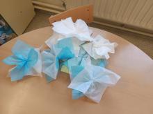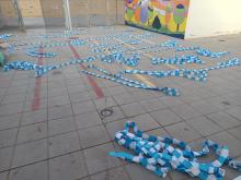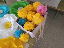 Con ilusión hemos engalanado los exteriores del colegio para recibir a Ntra Sra. la Virgen de los Santos para que cuando pase por delante,los niños le canten con devoción .